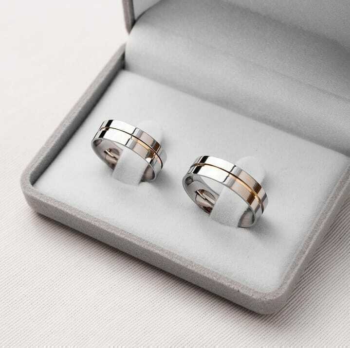 Alianças de compromisso feitas em prata 950 com filete em ouro