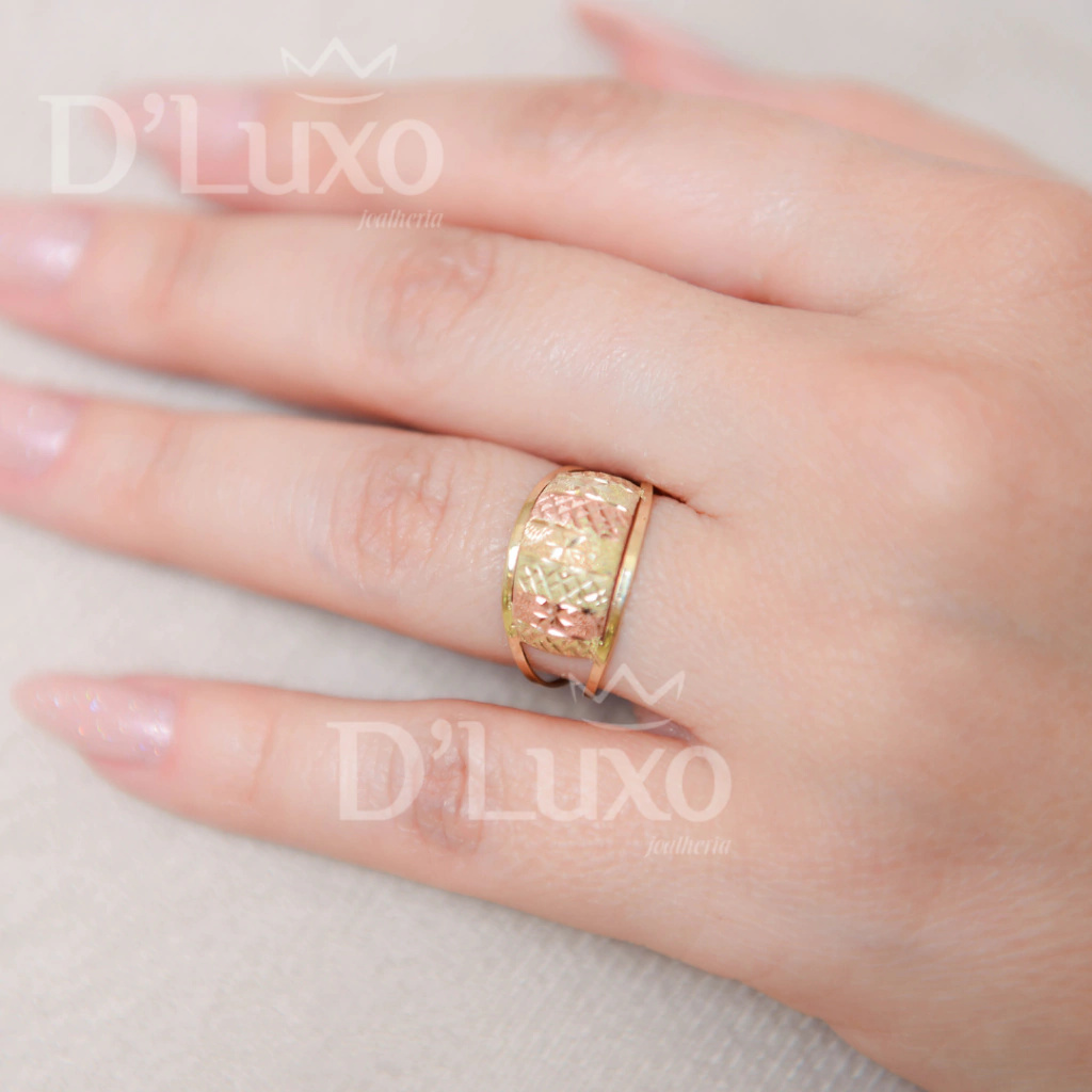 Anel de Chapinha Trabalhada em 3 tons de ouro.