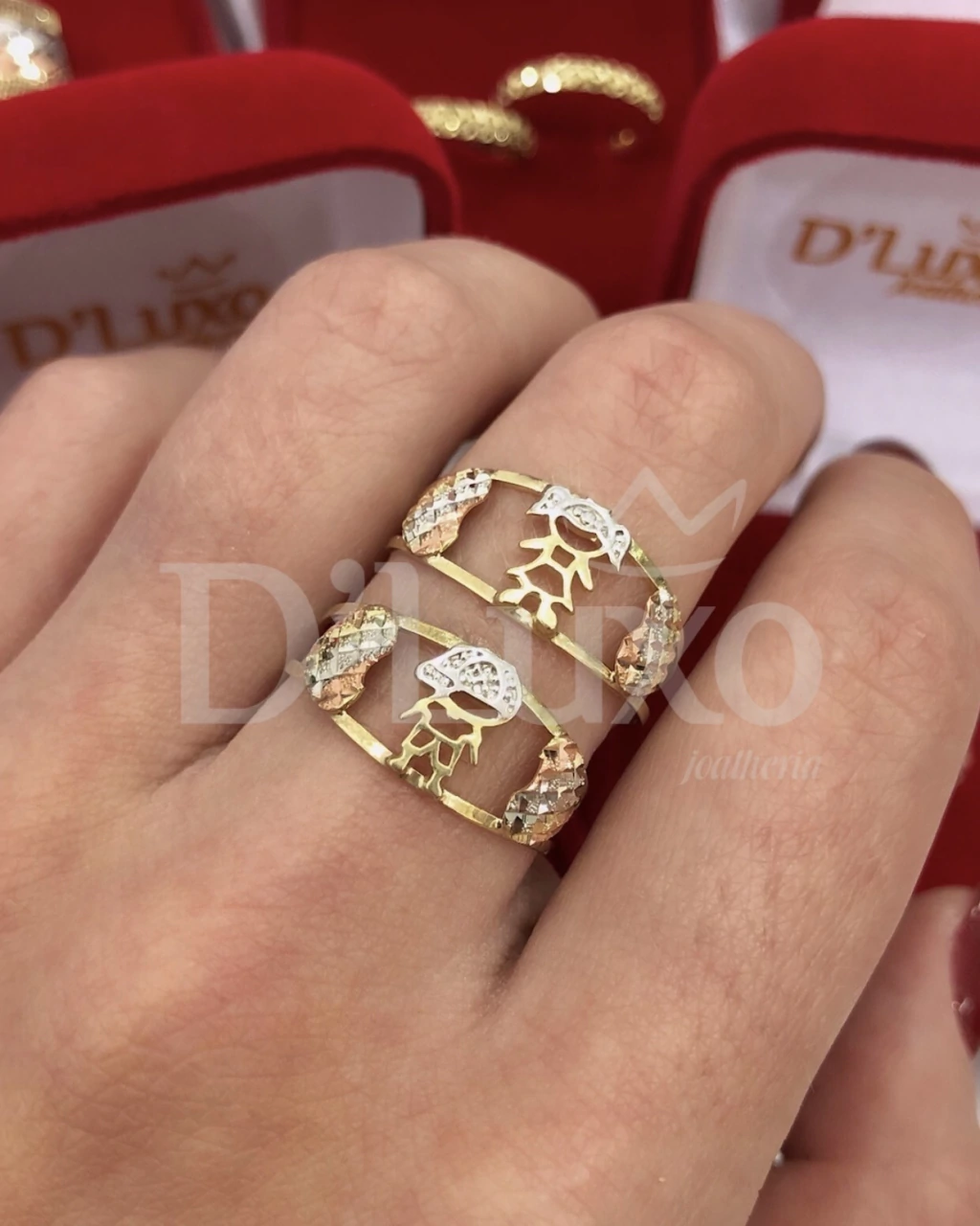 Os detalhes em três tons de ouro tornam este anel uma verdadeira obra-prima, perfeita para celebrar momentos especiais. Além de sua estética deslumbrante, ele acompanha garantia eterna do Ouro, assegurando que sua joia mantenha seu brilho e valor ao longo do tempo.