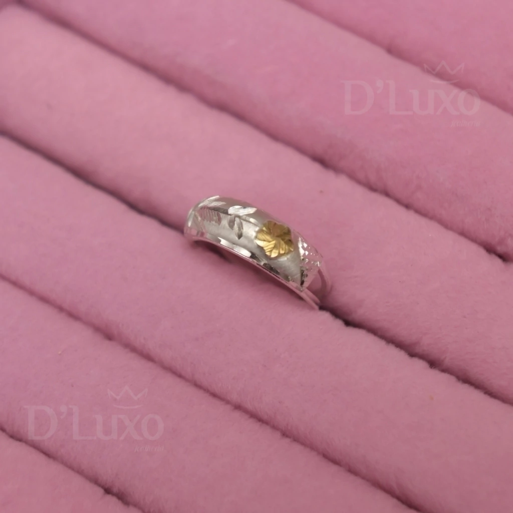 Anel de chapinha trabalhada, em prata 950k com toque em ouro 18k.