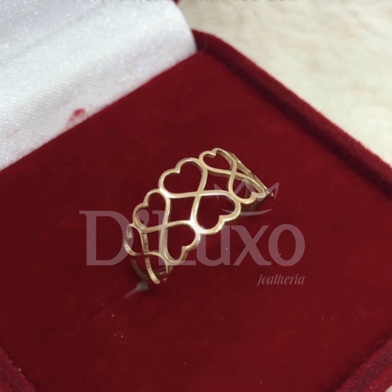 Descubra a beleza e a elegância do Anel de Corações Formando Vários Um Infinito. Este delicado anel é uma celebração do amor eterno, ideal para quem busca um toque sofisticado em suas joias.