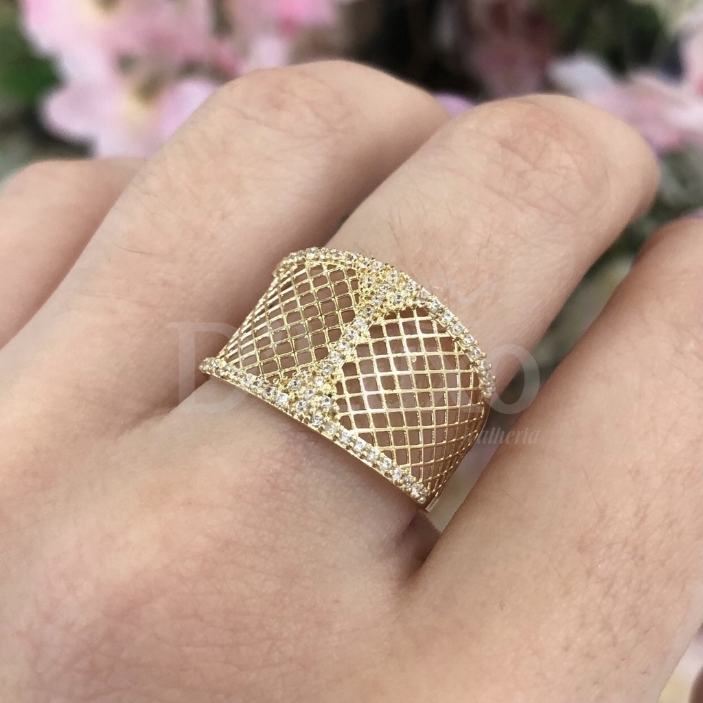 Descubra o Anel Maxi, peça central da exclusiva coleção D’Luxo, concebida para transmitir sofisticação e requinte em cada detalhe. Este anel apresenta um design único em 3D, inspirado na forma de uma grade delicadamente cravejada com zirconias que realçam seu brilho incomparável.