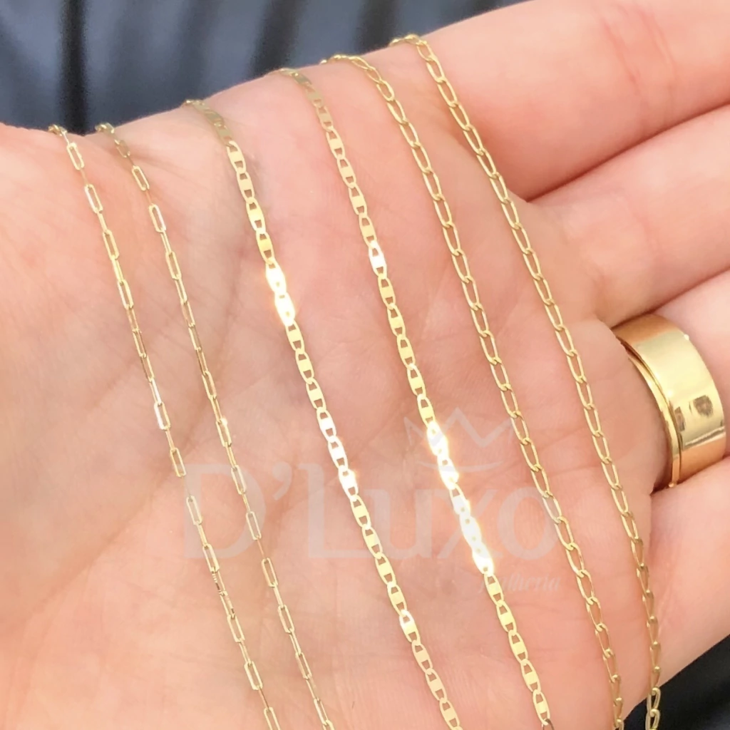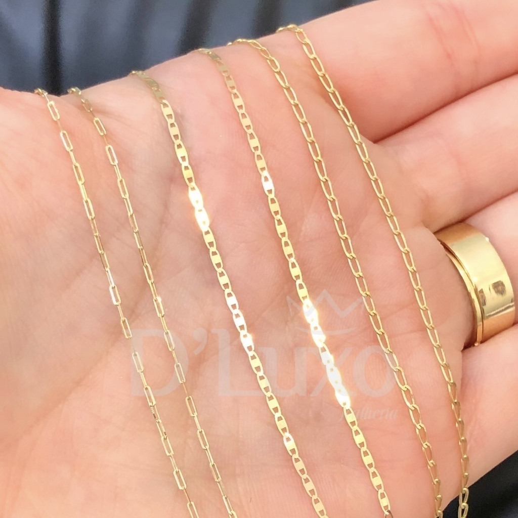 Cada peça acompanha garantia eterna do ouro e um certificado de autenticidade, assegurando que sua corrente manterá seu brilho e valor ao longo do tempo.
